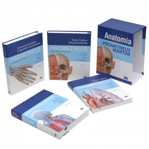 Il cofanetto contenente "PROMETHEUS – TESTO ATLANTE DI ANATOMIA" di Schünke, Schulte, Schumacher in tre volumi e "ANATOMIA UMANA" di Martini, Timmons, Tallitsch offre un’esclusiva ed approfondita panoramica dell’anatomia umana. Prometheus – Testo Atlante di Anatomia rappresenta uno strumento utile non solo per gli studenti, in grado di fornire nozionianatomiche precise, dettagliate e selezionate nell’ottica della professione medica e quindi estremamente valido durante l’apprendimento dell’anatomia, ma anche una preziosa opera di aggiornamento, verifica e consultazione nella professione quotidiana per i Medici, per gliSpecialisti e, in generale, per tutti i Professionisti Sanitari. Anatomia umana nasce con l’obiettivo di supportare lo studente nella comprensione tridimensionale delle relazioni anatomiche e di predisporlo ad affrontare al meglio corsi approfonditi di anatomia, di fisiologia e relativi alle materie correlate.